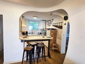 L’appartement se compose d’un grand séjour lumineux de 34 m², d’une cuisine équipée et fonctionnelle avec arrière-cuisine, ainsi que d'une chambre. Les WC sont séparés. Un balcon permet de profiter des beaux jours en extérieur avec une belle exposition ouest. Deuxième chambre à créer très facilement.